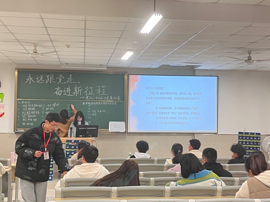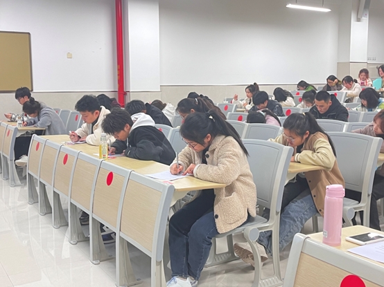 首先党的二十大知识竞答环节,众选手们将在10分钟内作答50道题,根据选手分数的高低获取积分。在这十分钟内,选手们奋笔疾书,尽管时间紧迫,但同学们都认真答完了所有题目并取得了优异的成绩。