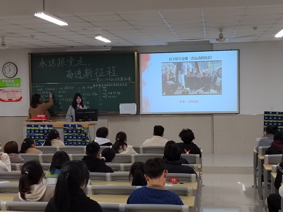 最后“重要大事我知道”环节,七段红色影片一个接一个播放,同学们积极抢答的形式一瞬间将气氛推向了高潮,其中与新青年五四运动相关的片段,仅仅播放不到3秒,便有人抢答正确。