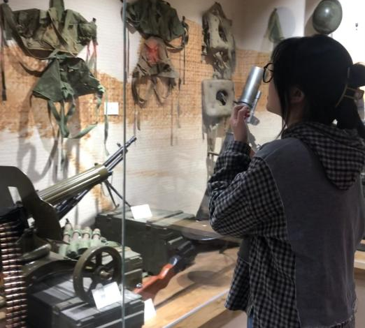 在现场体验环节,学生党员依次参观了纪念馆各个展厅,观看着一个个展陈实物、一段段文字介绍和一件件历史图片,聆听着讲解员讲述它们背后的故事。“令我印象最深的是国防部以毛主席的名义,授予连长汪月霞的一支无比珍贵的步枪。我觉得这杆枪既是荣誉,更是责任,诉说着女子民兵连的成长与辉煌,更激励着一代代青年人勇担责任、保家卫国。”来自护理学专业的朱丽同学说道。