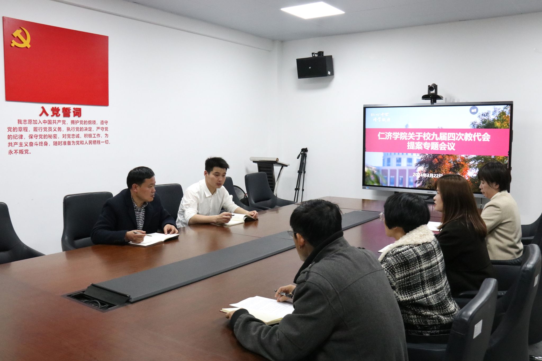近日,学院在茶山校区7A113会议室召开学校第九届四次教代会提案工作专题研讨会。滨海校区管委会副主任、学院副院长张树辉,学院党委副书记张立康出席会议,校教代会代表、工会委员参加会议。