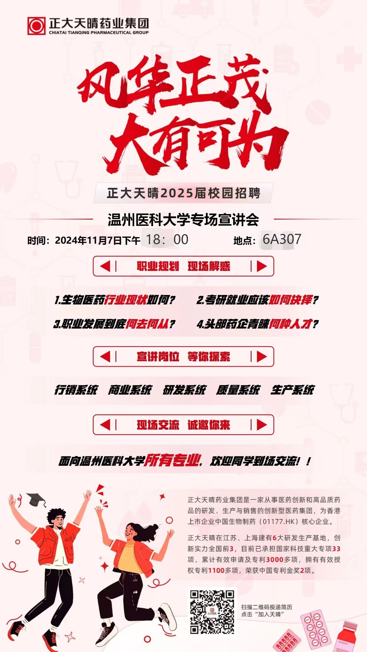 正大天晴2025届校园招聘91吃瓜 专场宣讲会