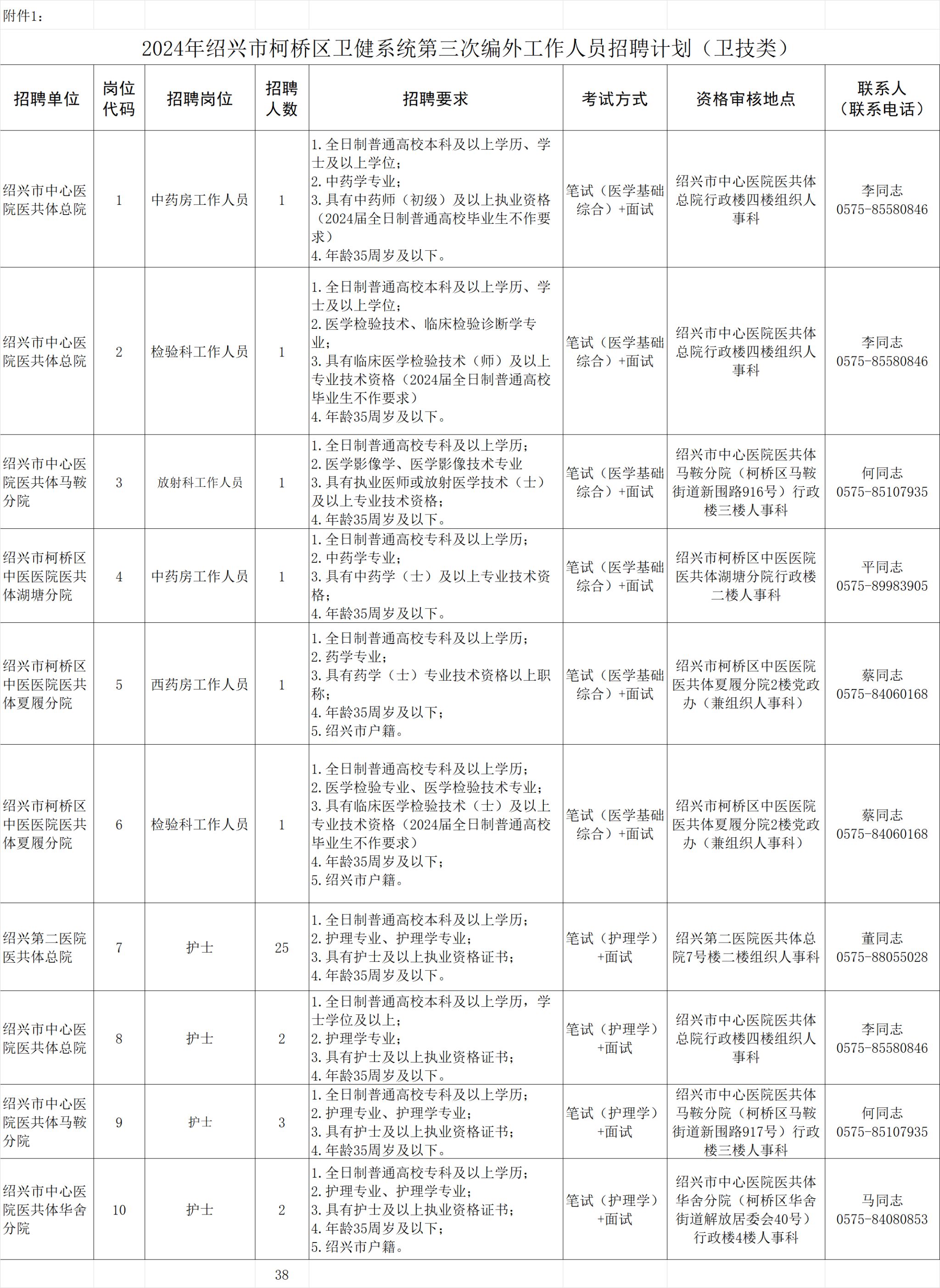 柯桥区部分卫生健康单位计划招聘工作人员53名(23个招聘职位)。(其中卫技类工作人员38名,非卫技类工作人员15名)