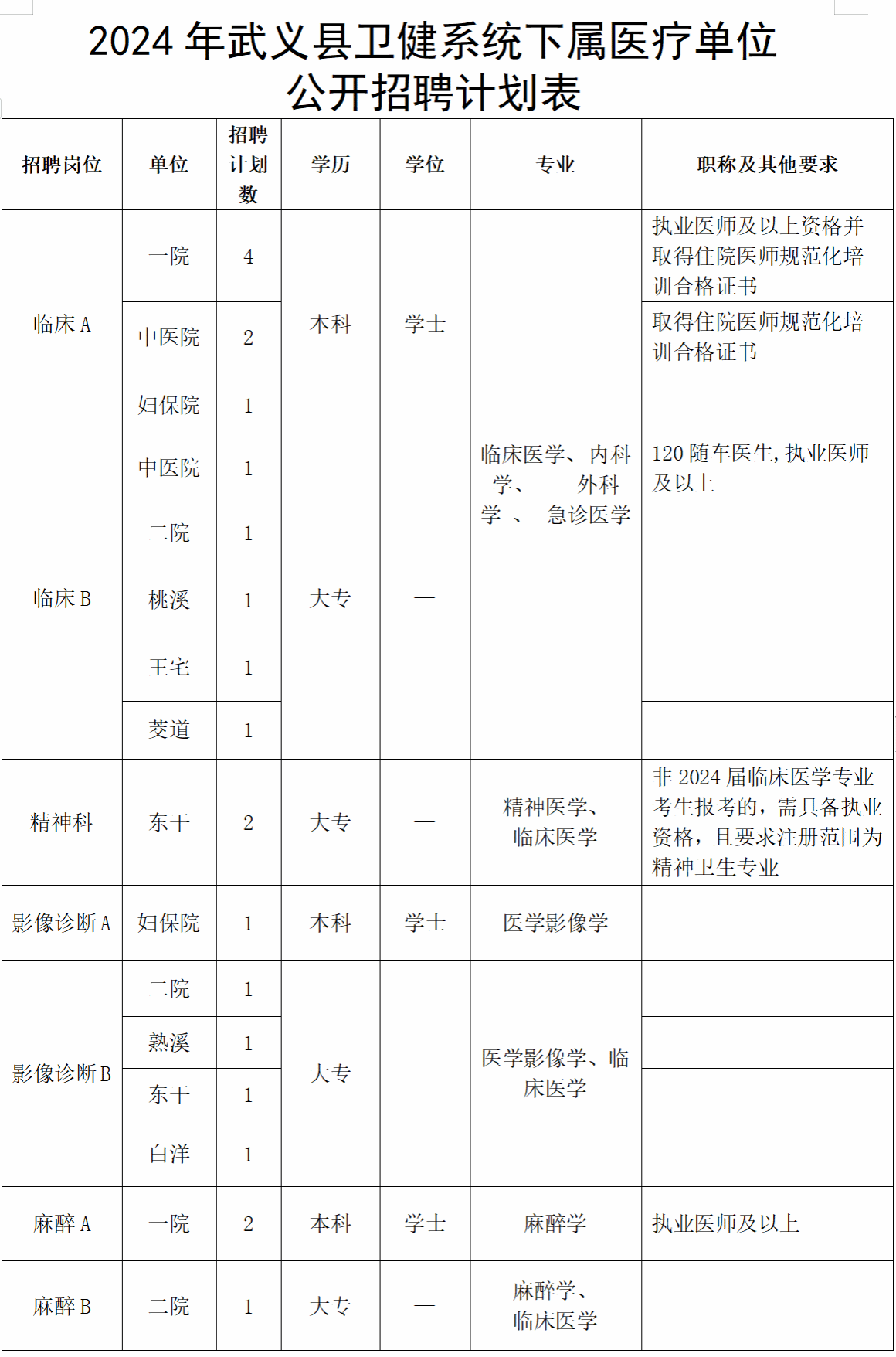 金华丨2024年武义县卫健系统下属医疗单位公开招聘事业单位工作人员公告